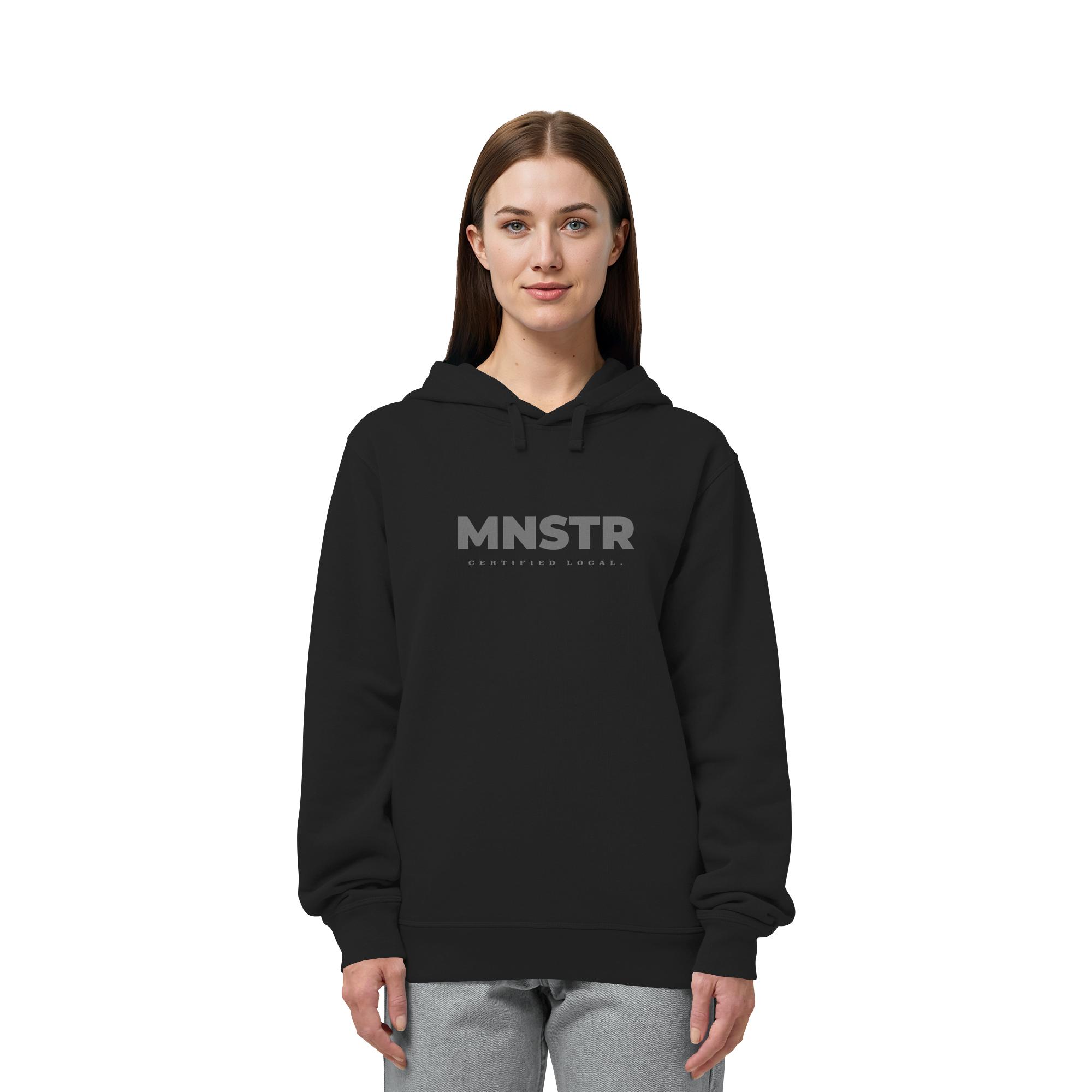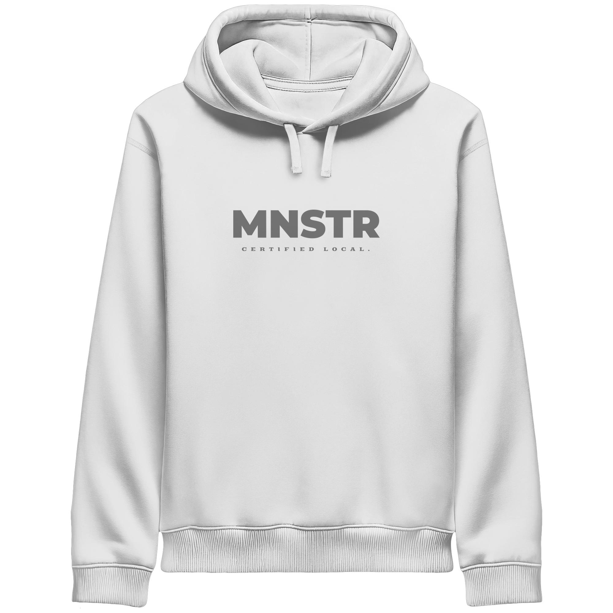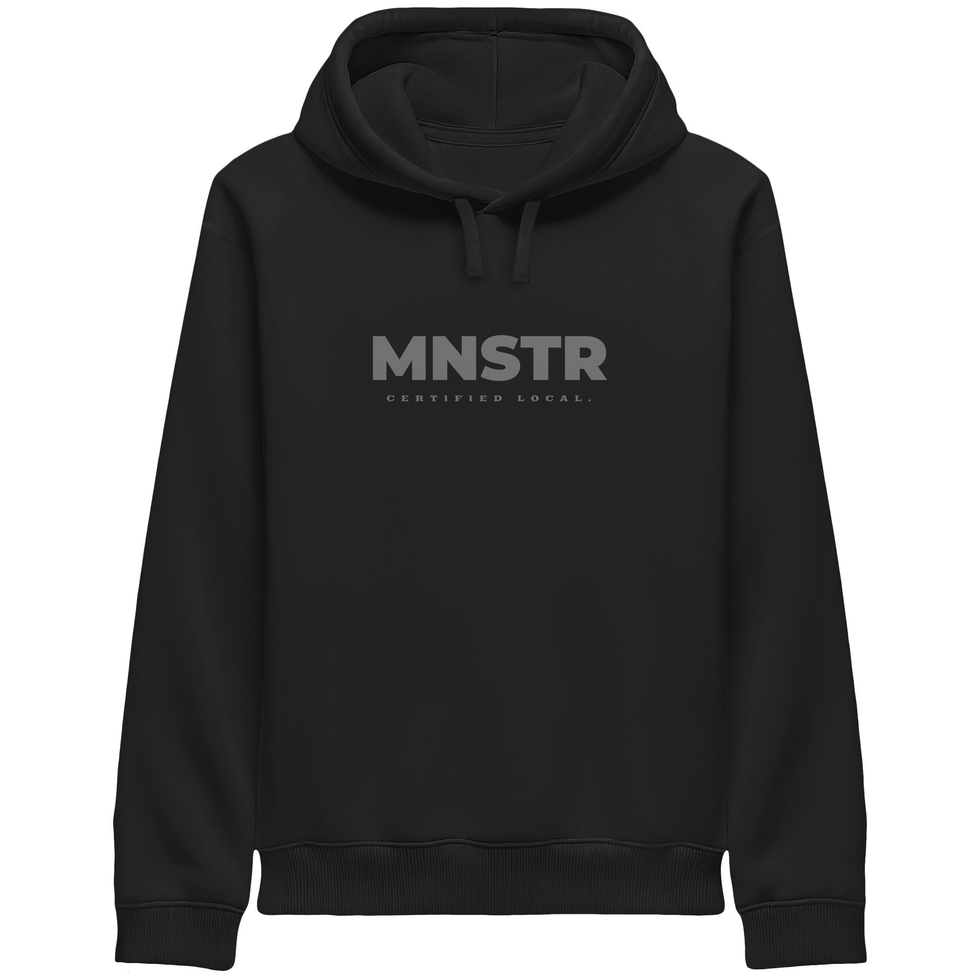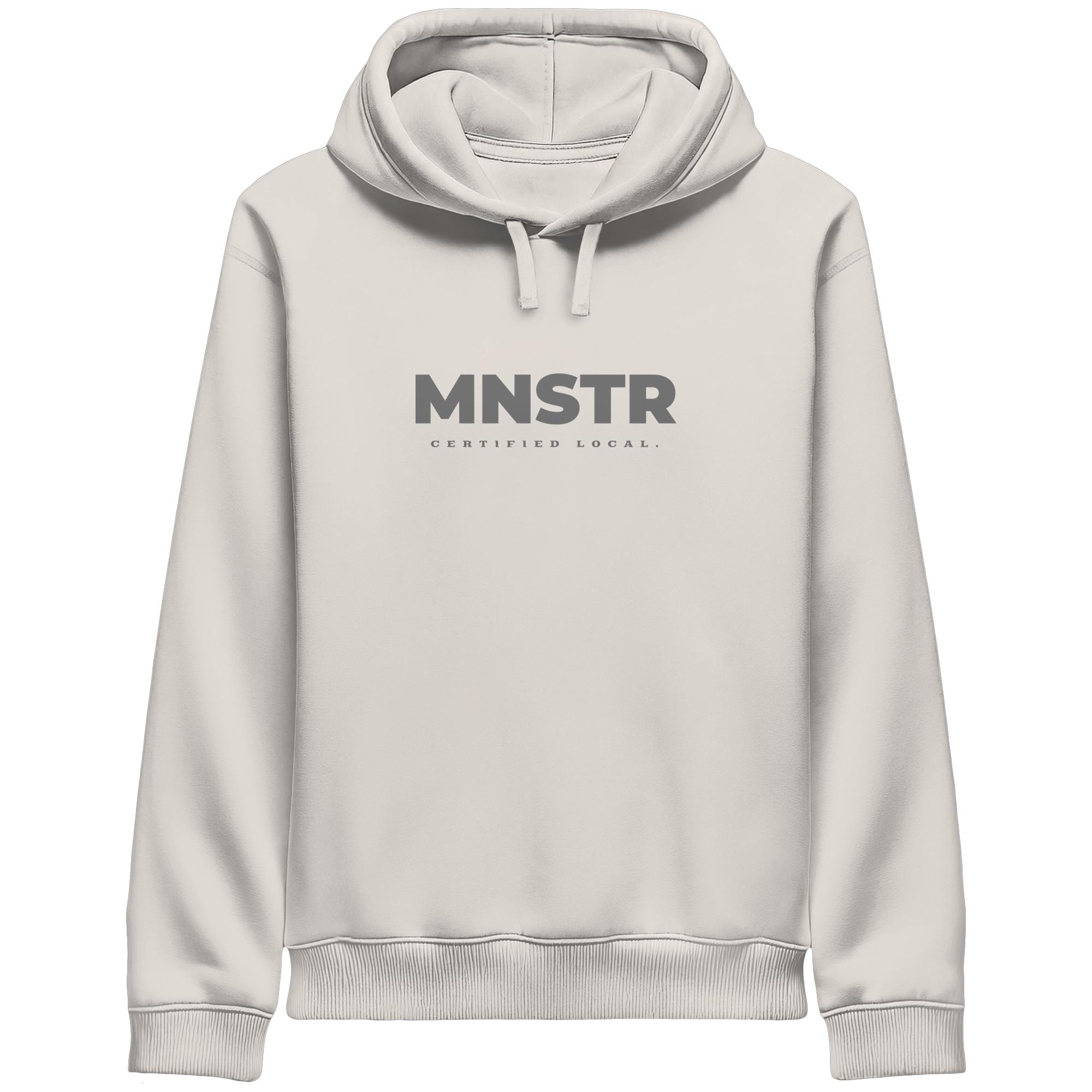 Das dezente MNSTR Certified Local Siegel steht im Mittelpunkt und symbolisiert lokale Verbundenheit. Perfekt für den urbanen Entdecker.