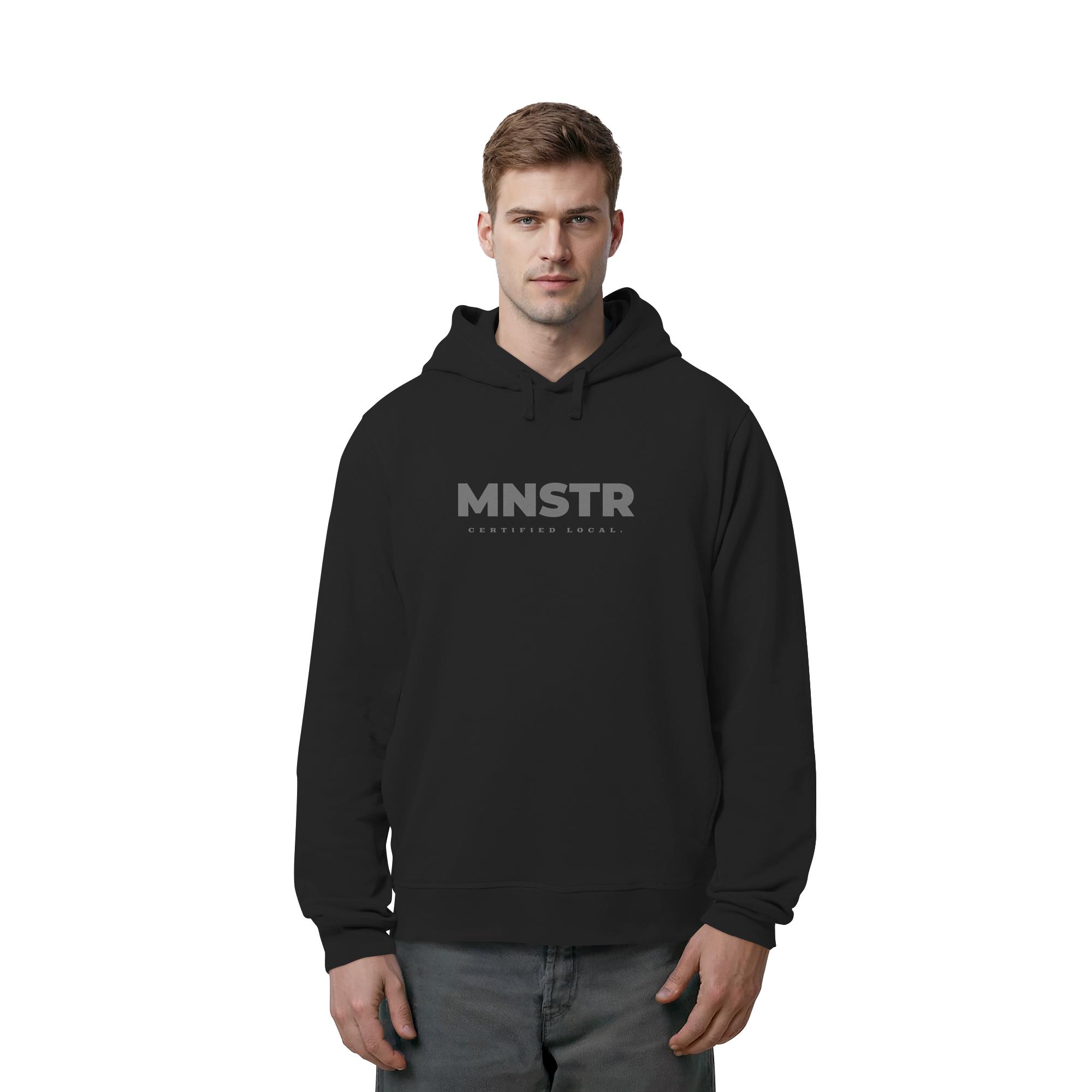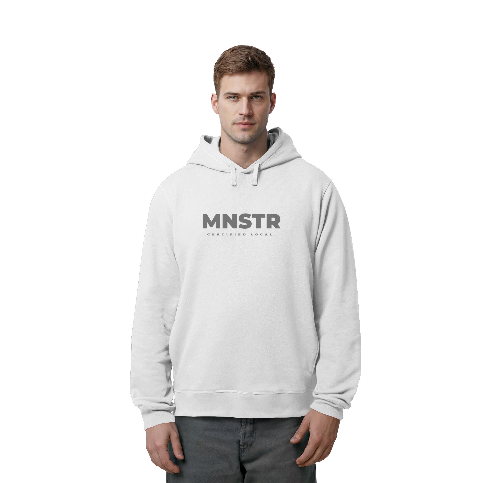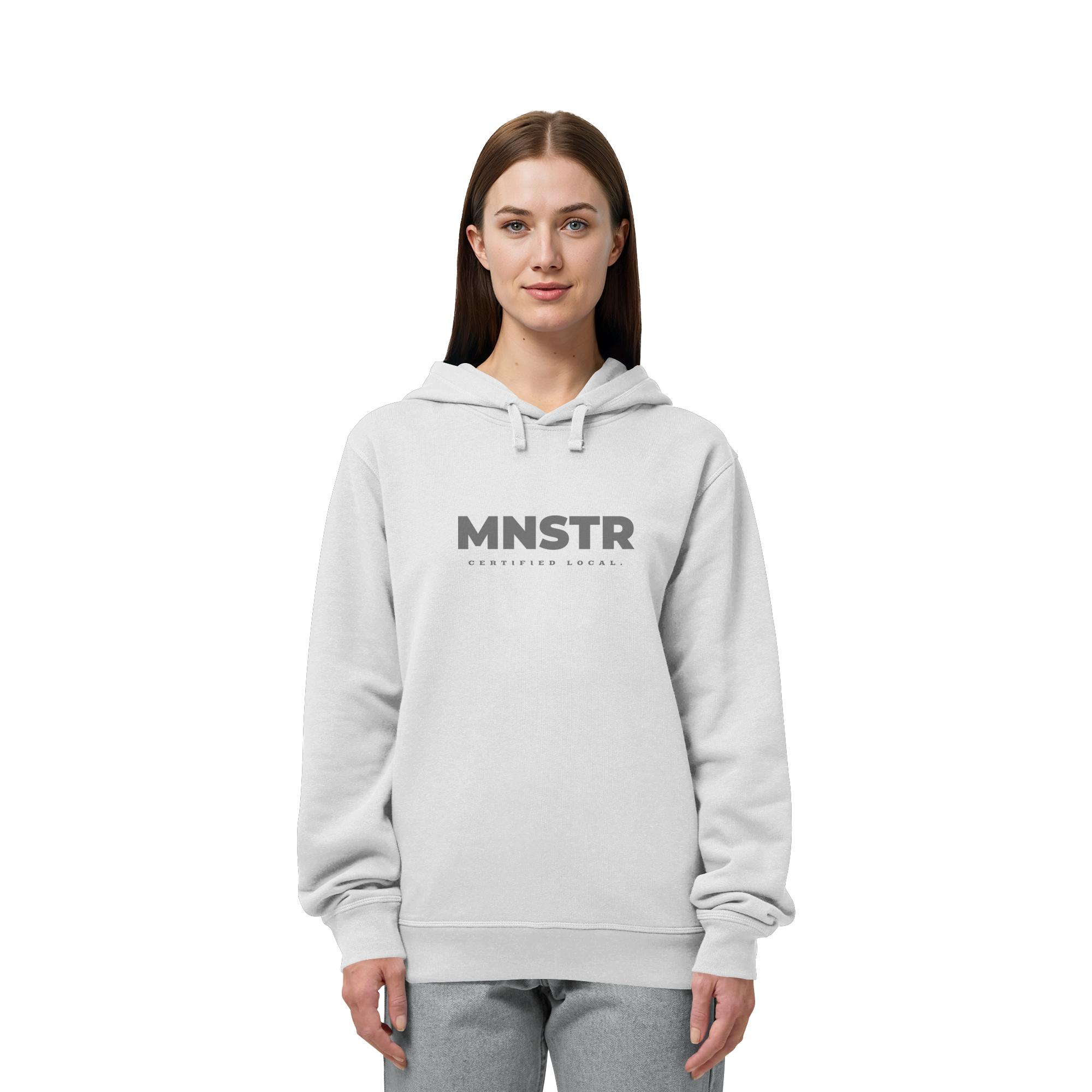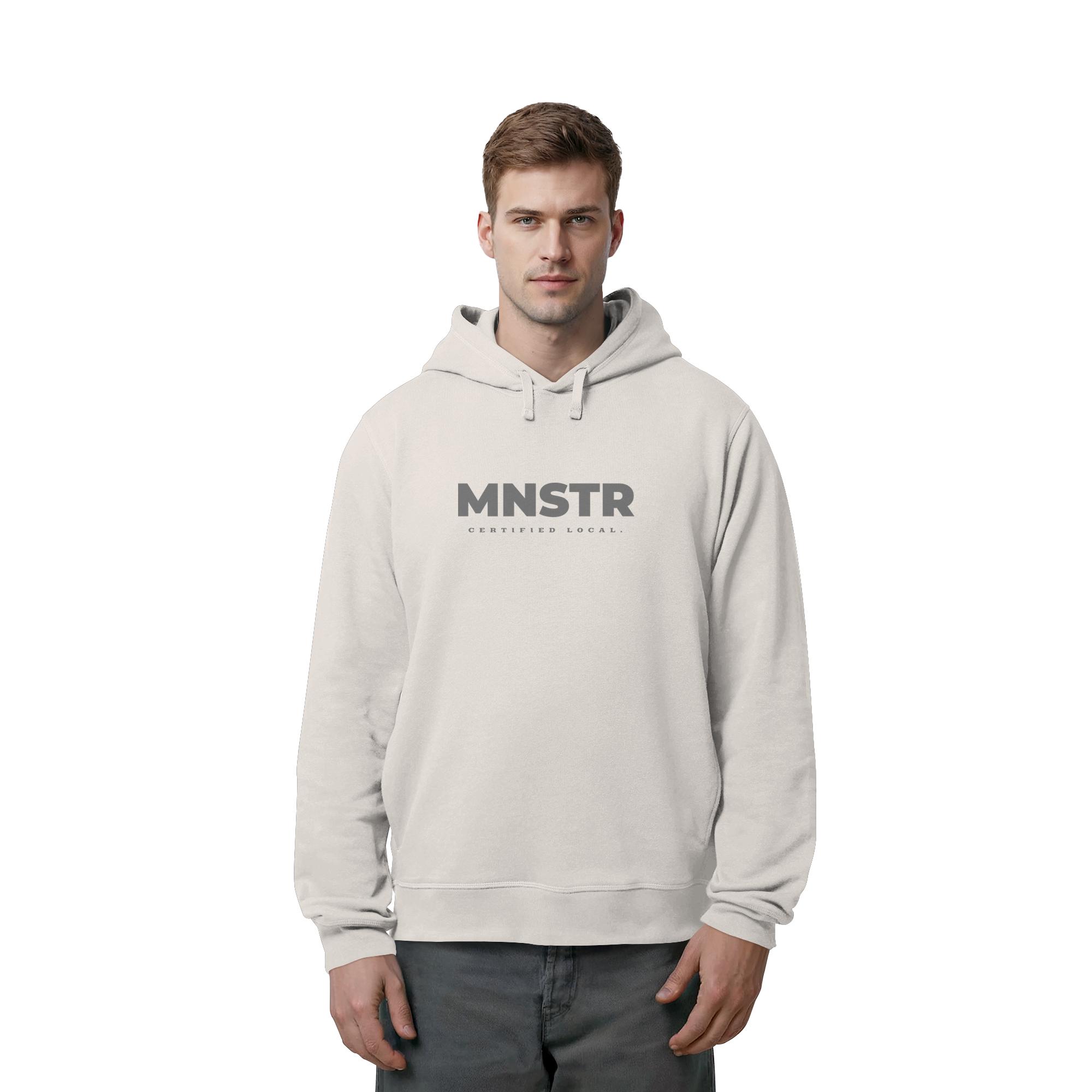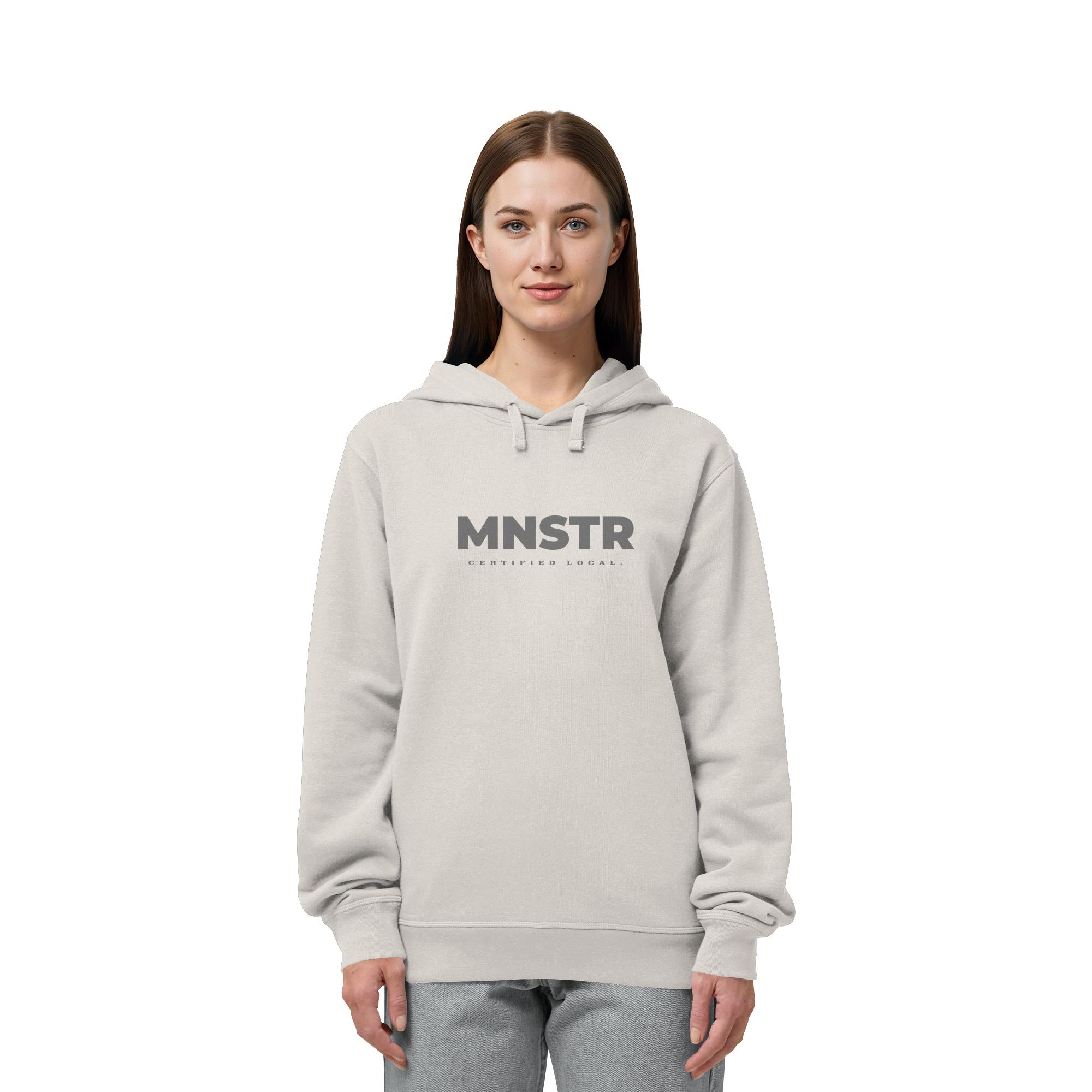 Das dezente MNSTR Certified Local Siegel steht im Mittelpunkt und symbolisiert lokale Verbundenheit. Perfekt für den urbanen Entdecker.