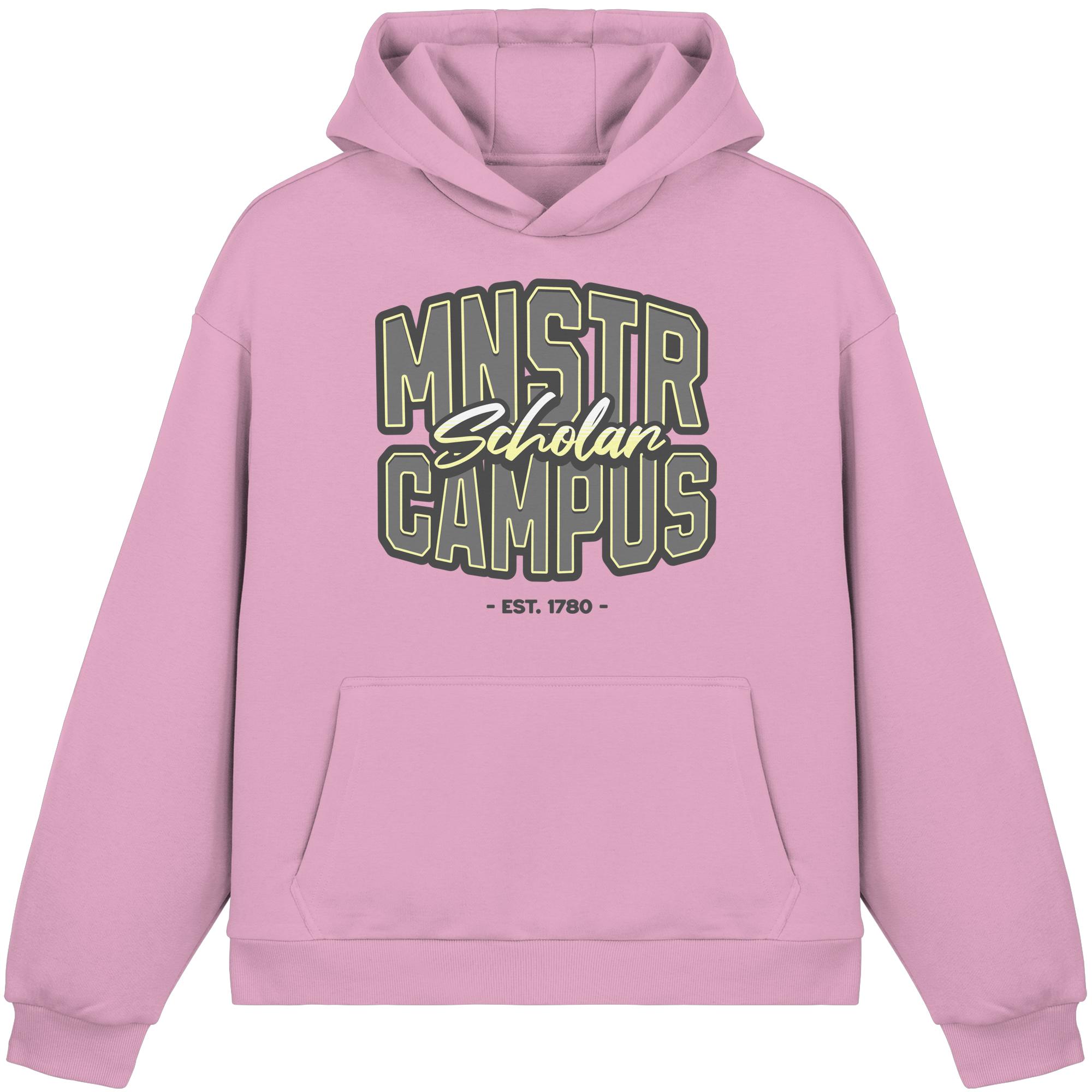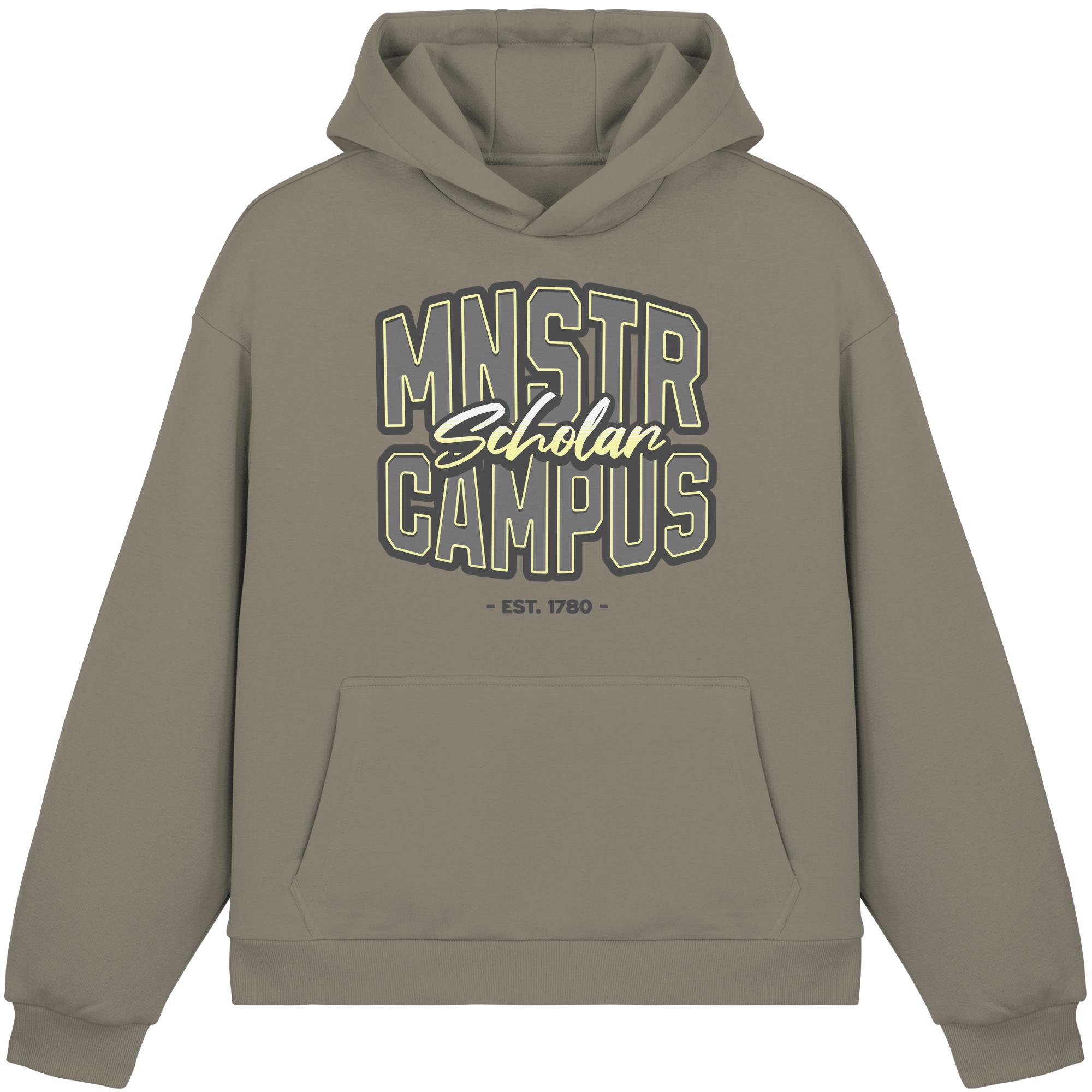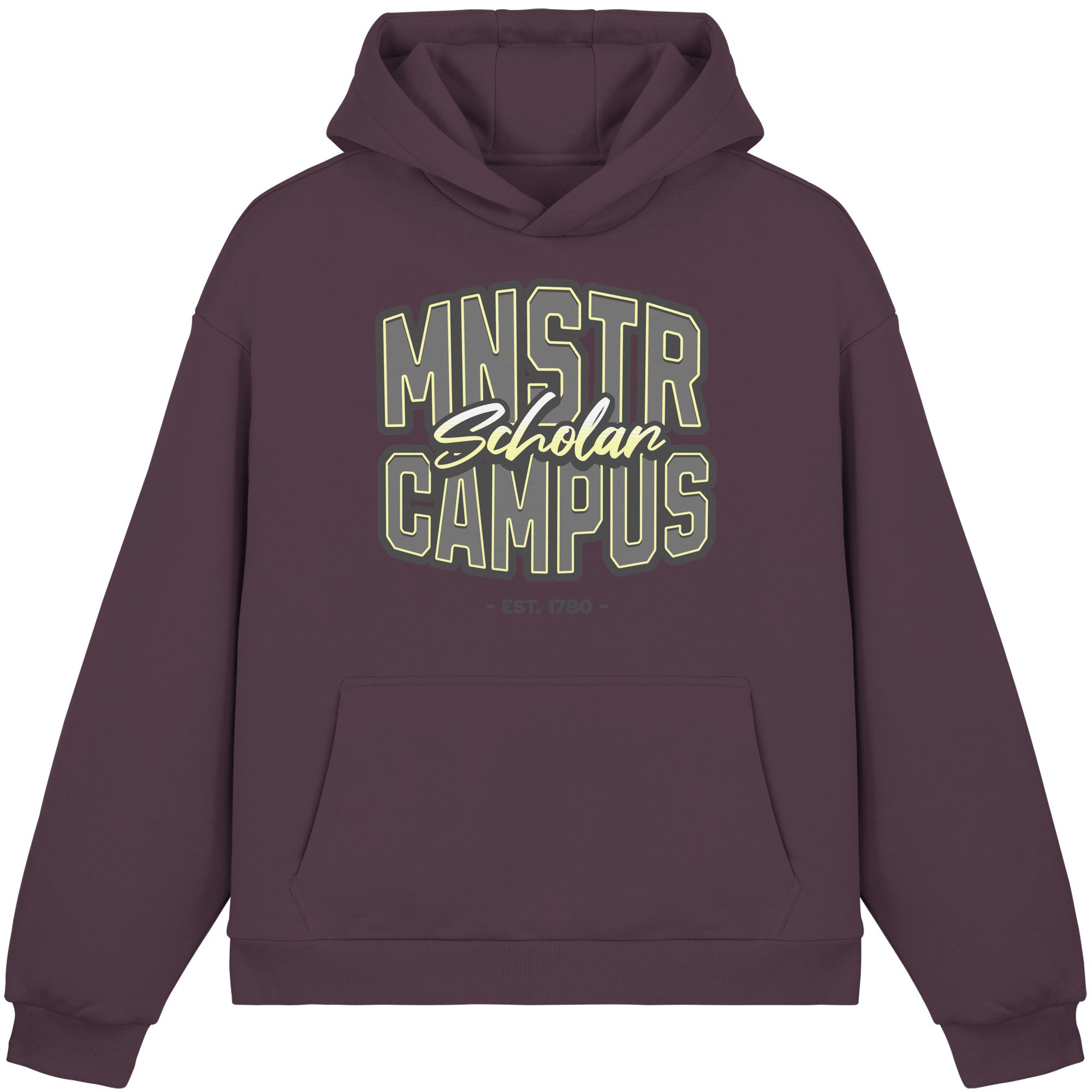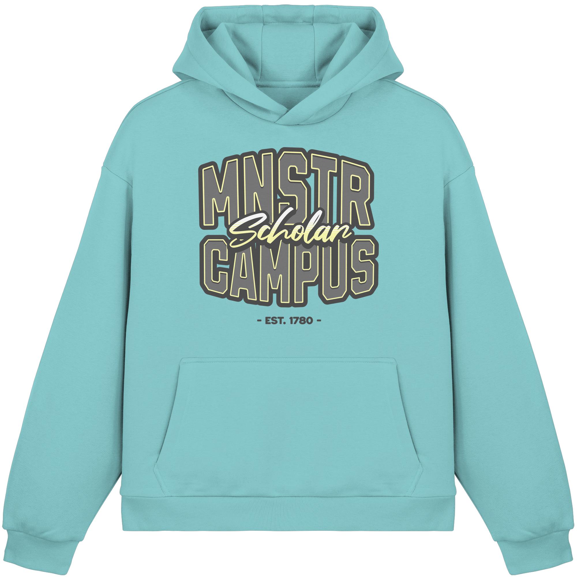 Zeig, wo du studierst, lebst oder einfach gern bist: Der MNSTR Campus T-Hoodie bringt den lässigen College-Vibe direkt auf deine Brust – inspiriert vom Münsteraner Studileben, dem Sound der Leeze und der Kaffeepause am Aasee.
