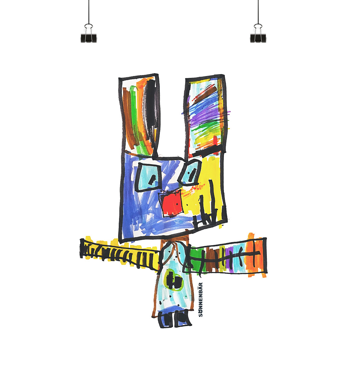 Design mit Charakter: Der Sonnenbär strahlt verschiedenen Farben – jeder Bär ein von Kinderhand gemaltes Unikat. Die kindliche Einfachheit und die lebendige Farbauswahl stehen für ungebremste Fantasie und Lebensfreude.